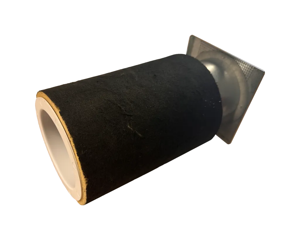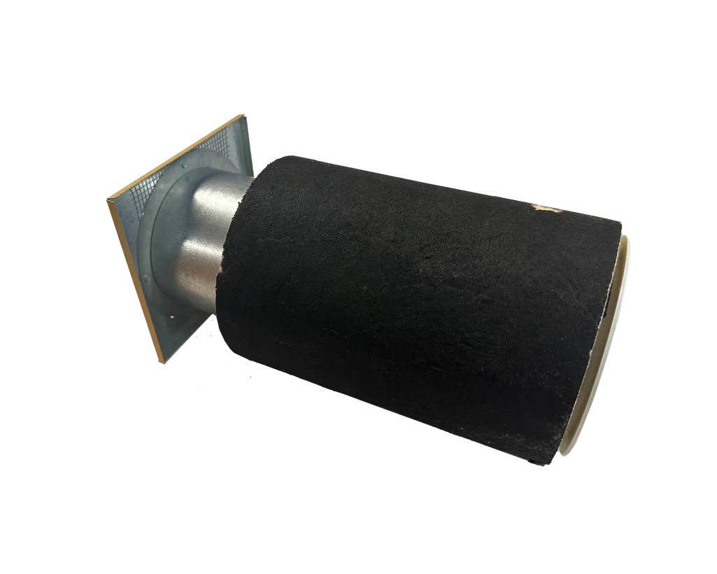 Cirkulär ljuddämpande kanal Ø100 mm av mineralull och plåt för betongvägg.