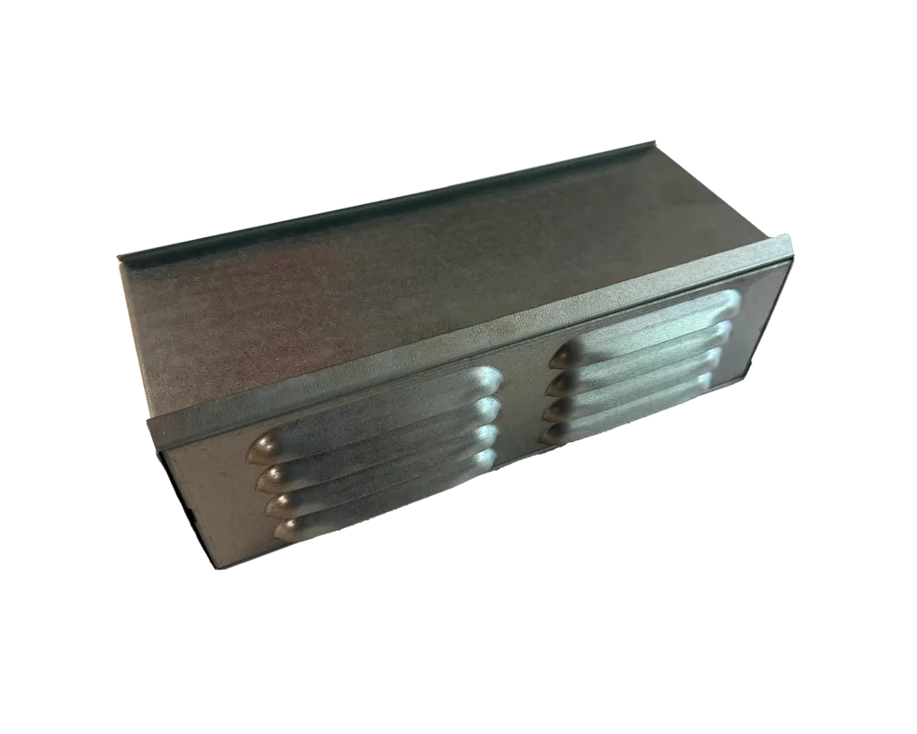Fasadgaller med tegelstenslåda i svenskt tegelstensformat.