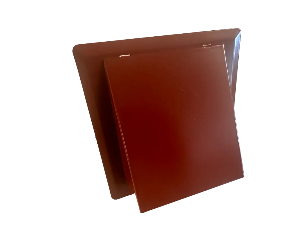 Kvadratiskt ytterväggsgaller med stormhuv, cirkulär anslutning Ø100 mm.